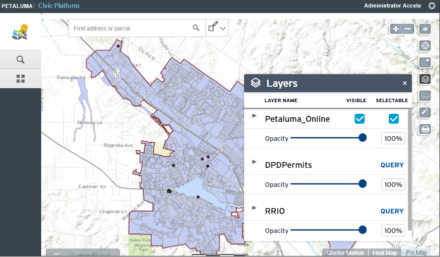 Accela GIS administrators enable agency users to use the Accela GIS map viewer: