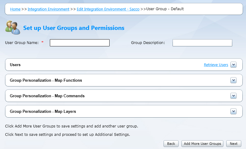 When you create an additional user group, you must retrieve users from the Civic Platform application server. Any users that you retrieve but do not assign to a specific user group are automatically assigned to the default user group.