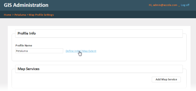 - On the Map Profile Settings page, click Define initial map extent: